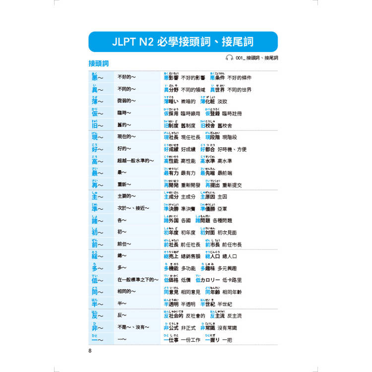 JLPT N2 必學接頭詞、接尾詞
