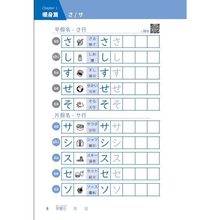 • ☑ 50 音 X 圖示 X 入門單字,打好基礎