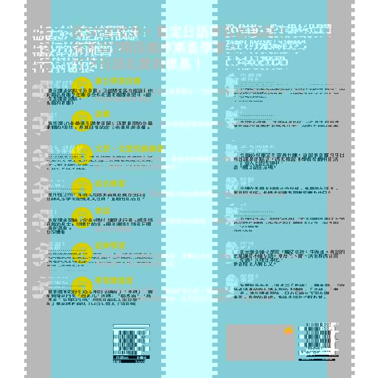 標示每課必學的重點文型及重要觀念,不但能清楚掌握各課的學習項目,也能作為每課的複習重點。