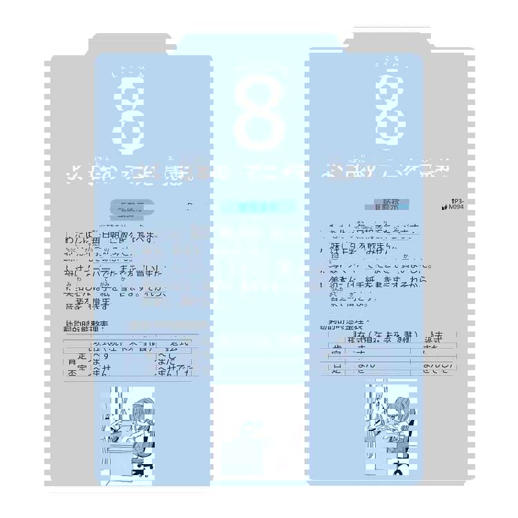 依照每課的學習主軸,設定情境式的對話,讓學習者進行語調、語感等日語環境的沉浸體驗。