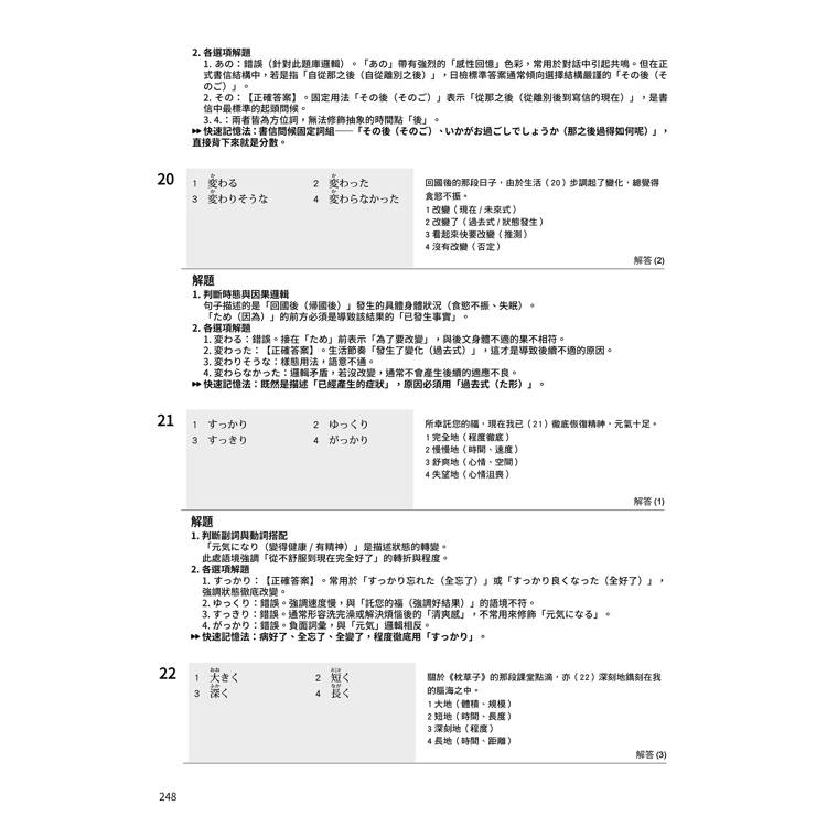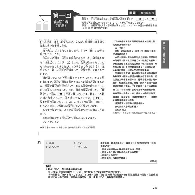 通勤聽、睡前聽、運動聽,讓耳朵習慣日語的節奏。練到後來,你會發現:考場上問題一出,你的耳朵就像雷達一樣,自動鎖定正確答案的位置!聽力不再是你的弱點,而是你的王牌武器。