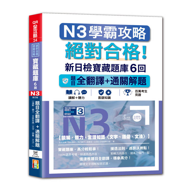 N3學霸攻略 絕對合格!新日檢寶藏題庫6回:題目全翻譯+通關解題【讀解、聽力、言語知識〈文字、語彙、文法〉】(16K+6回QR Code線上音檔)