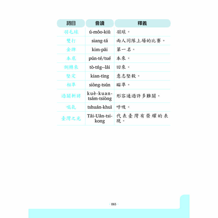 對老師來講,這本冊希望成做一套「會當直接提入去教室」使用的教材,免閣開足濟時間重新設計;對學生來講,向望伊是一扇門,予台語毋但是認證考試的科目,閣是一種會當用來講故事、表達感受、分享理想的語言。若囡仔會當因為這本冊,開始較敢開喙講台語,甚至佇生活內底主動使用台語來溝通,那按呢是這本冊上大的價值。