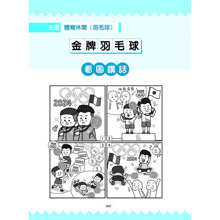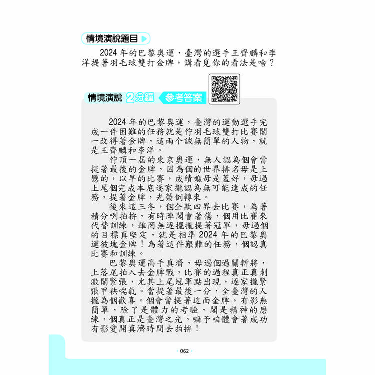 二、看四格漫畫寫短文,附30秒、1分鐘版本的參考答案,以及2分鐘的情境演說文字稿。