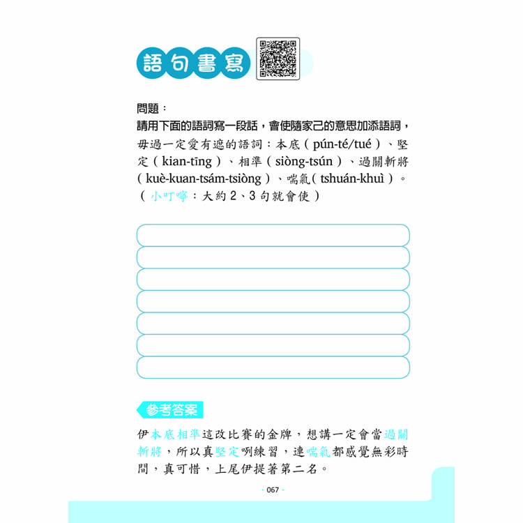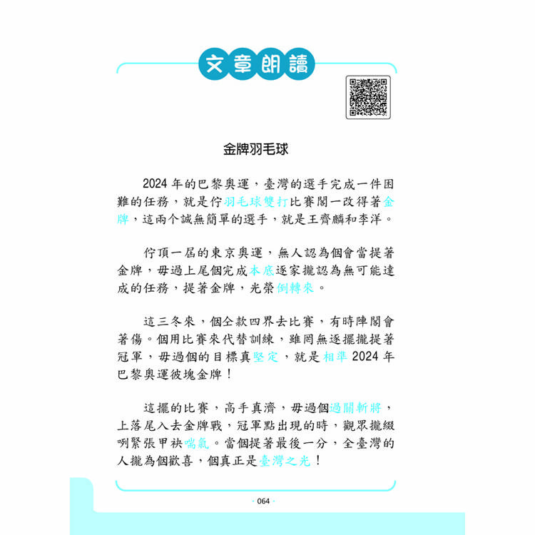 ◎掃描QR Code聽文本、題目、答案音檔,自學臺灣台語發音,認證提懸分!