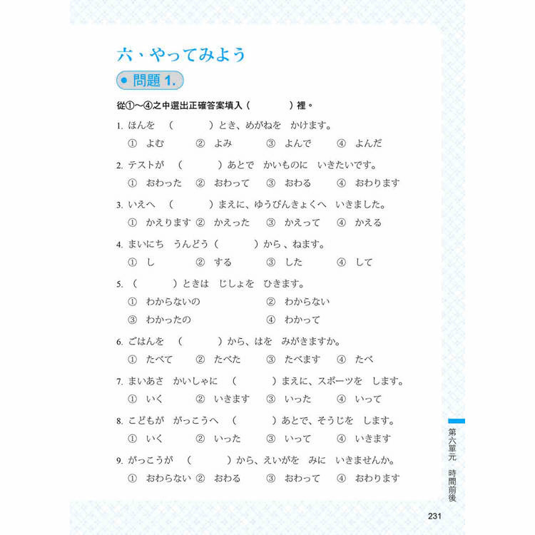 1.文法1:判斷文法形式,也就是選擇正確句型,共9題。