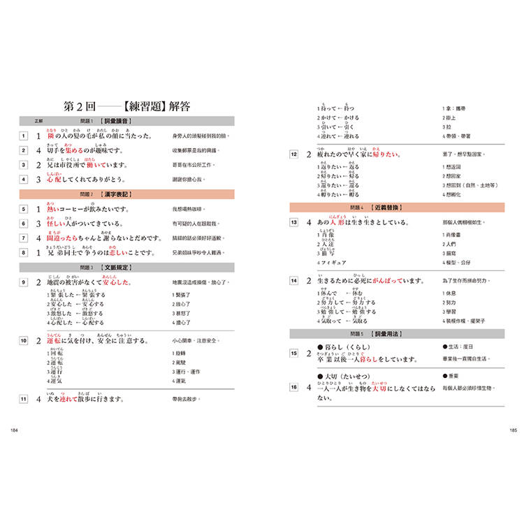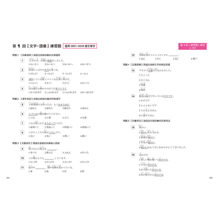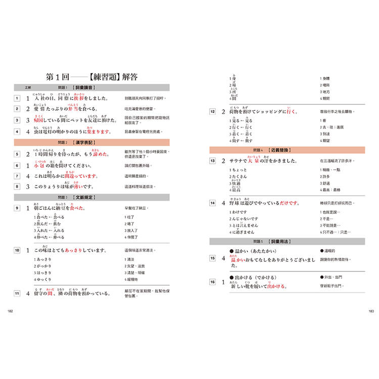 新日檢衝刺 N3 N4 N5 必考單字 2000+42 回【文字‧語彙】練習題&解答