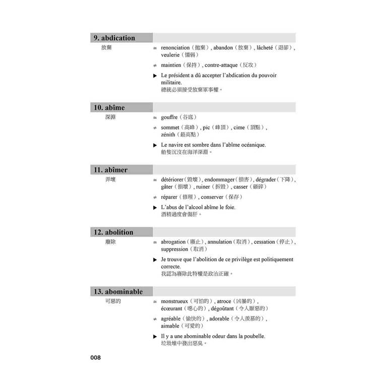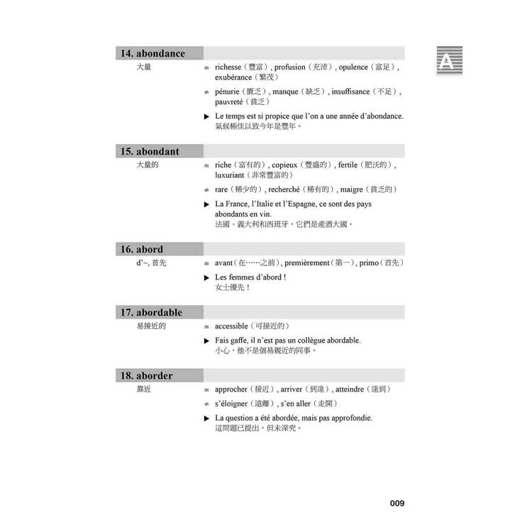 收錄逾2300個高頻詞彙,由此延伸出同義詞、反義詞及例句,