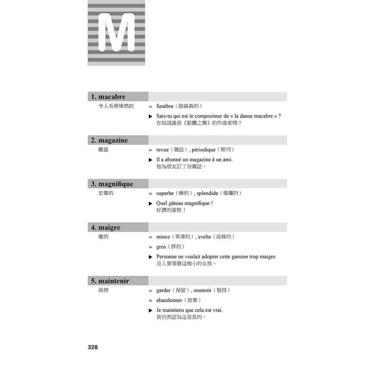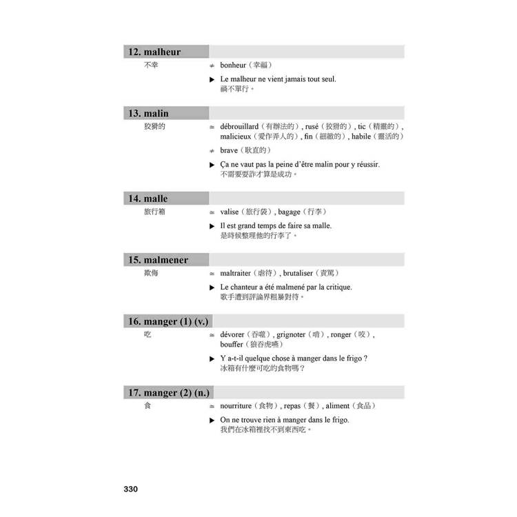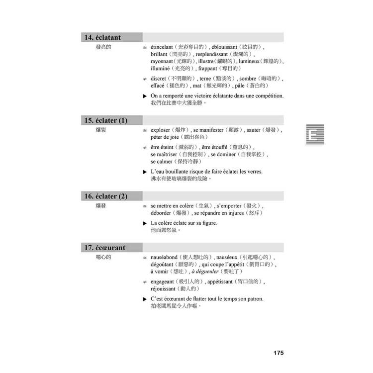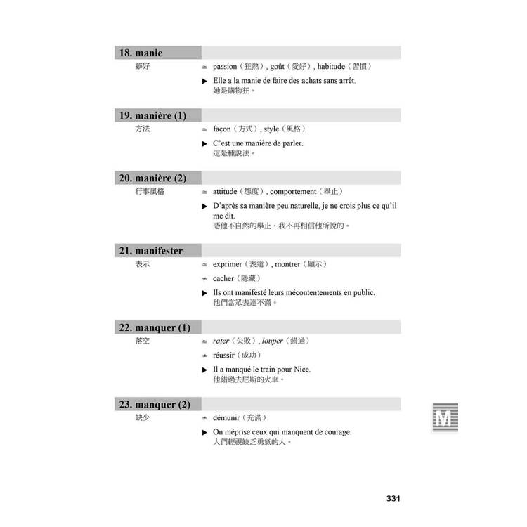 再由精選詞彙為基礎,延伸出你可能已經認識的同義詞、反義詞,讓你順著法語邏輯思考、聯想,記憶單字不費力!
