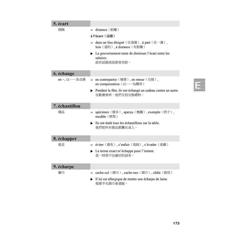 再者,筆者亦加上例句,以令讀者更能心領神會詞語的奧妙。希望這本花了筆者多年時光,尤其集數位編輯辛苦努力而編成的詞典,能為讀者受用,也算是大家對法文界的小小貢獻吧。但筆者自認才疏學淺,其中若有差池,亦尚請多多海涵並予指正。