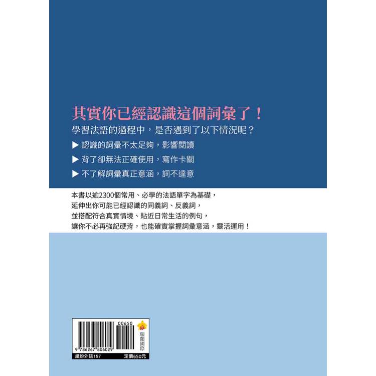 想改善以上情況,就讓這本《法語高頻詞彙同義‧反義寶典》成為你的學習良伴!