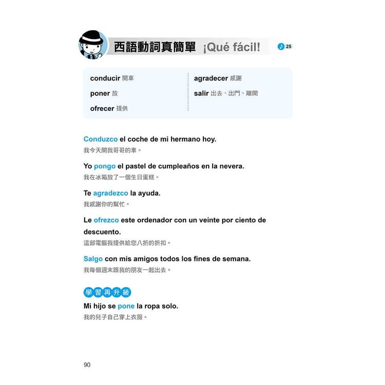 ˙搭配《西語動詞,一本搞定!》,掌握西語動詞的時態變化;