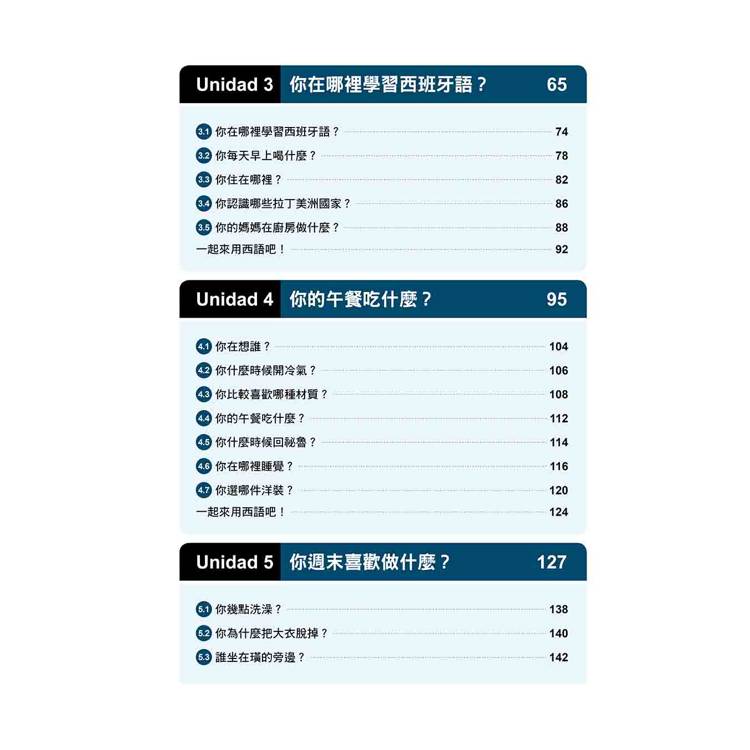 有了基礎文法概念之後,就能開始正課的學習。每個單元的開頭,皆附有「學習重點」和「西班牙語文法」,有了清晰的學習目標,就知道自己學了些什麼,讓學習更有動力。