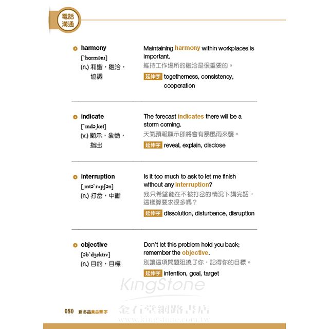 每個單字都附有可同時學習的延伸字,一次學會所有相關單字群組,系統性的快速增加單字量。