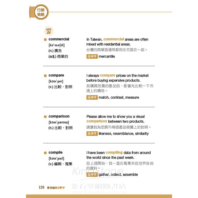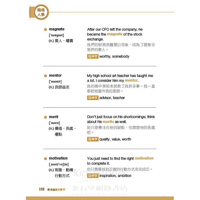 * 詞性、中文解釋、例句皆以新多益常見的商業用法為主