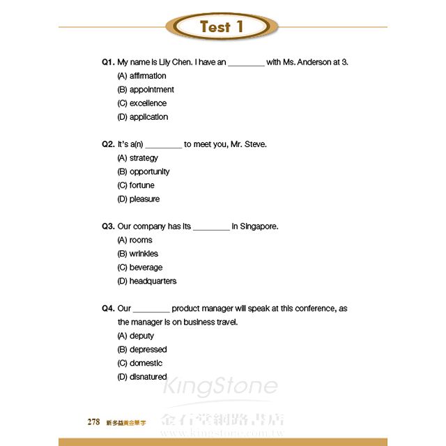單字測驗模擬新多益實際出題方式及測驗難度,輔以精闢解析,徹底提升新多益單字深度與廣度。