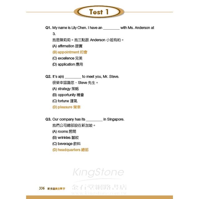* 中文詳盡解析各題題意及選項,有效辨別相似單字的差異