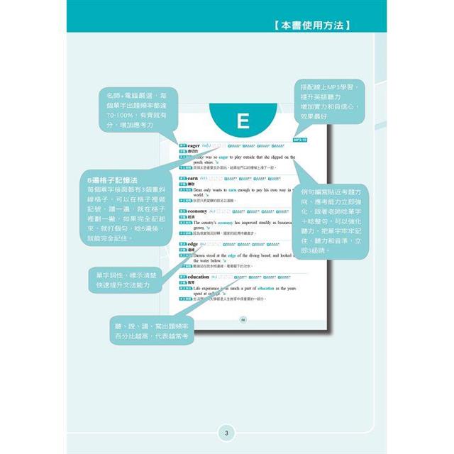 每個單字都是出題機率都很高,可以當平時厚植實力,也可考前最後衝刺的速記攻略,臨場10分鐘的最後加強。