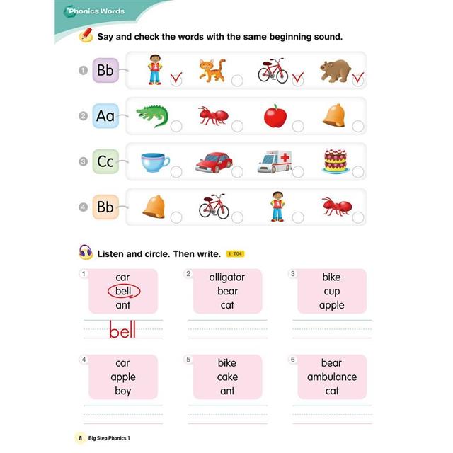 《Big Step Phonics with Phonics Readers》系列套書共有四冊,本書為第一冊。