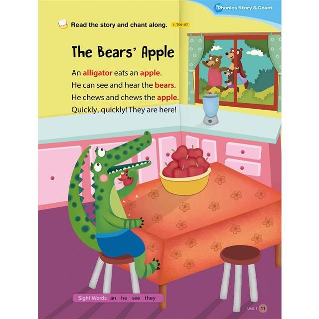 視覺豐富的發音教學:生動圖像搭配發音故事韻文,自然而然發展閱讀技能。