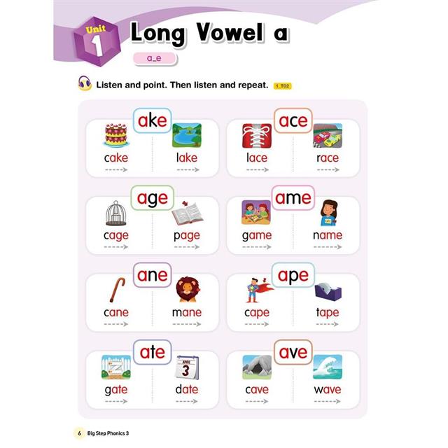 每冊皆有課本 (Student Book) 及練習本 (Workbook),希望讓第一次學習自然發音的孩子,能夠認識並熟悉所有的發音規則。本系列以充滿趣味的方式引導孩子學習自然發音,透過視覺上的豐富呈現、多樣性的練習方式,以及精心設計的發音韻文,幫助學生以自然發音為起點,逐步邁向單字、句子和段落閱讀,奠定穩固的英語閱讀基礎。