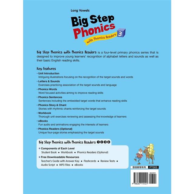 《Big Step Phonics with Phonics Readers》系列套書共有四冊,本書為第三冊。