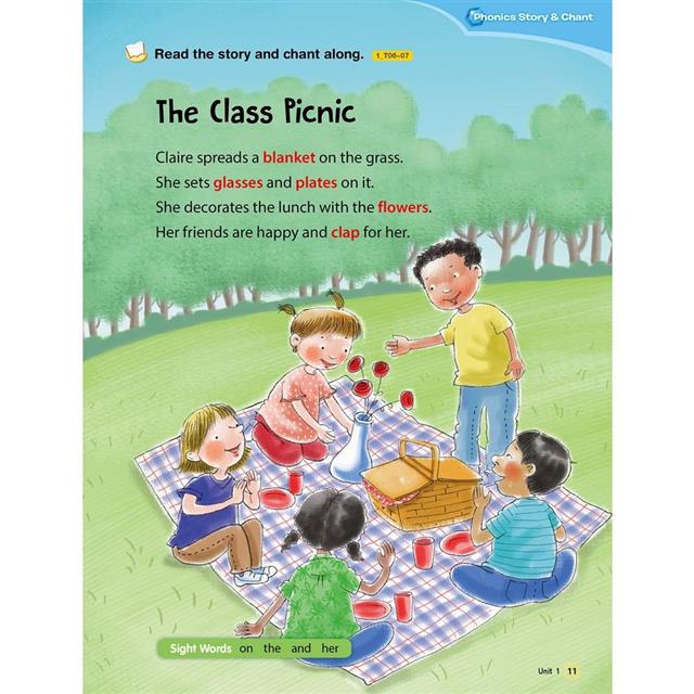 視覺豐富的發音教學:生動圖像搭配發音故事韻文,自然而然發展閱讀技能。