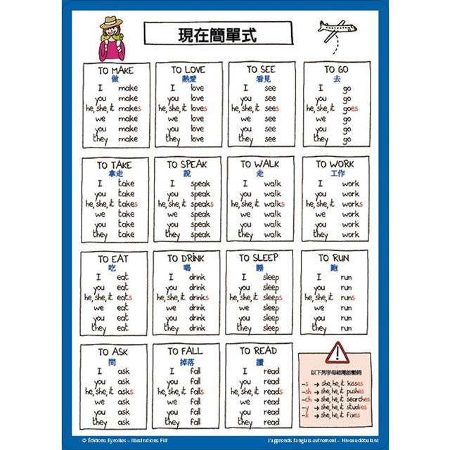 二、圖卡依主題分為:文法、時態、日常用語和字彙,圖卡種類如下: