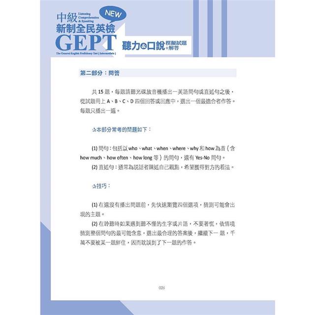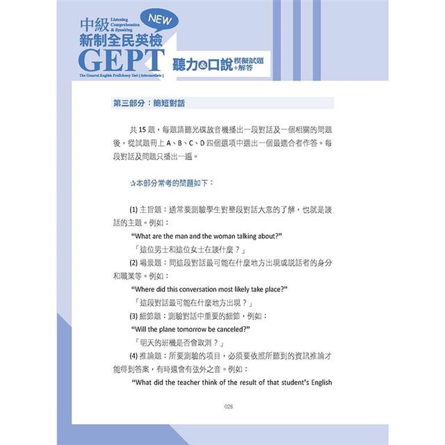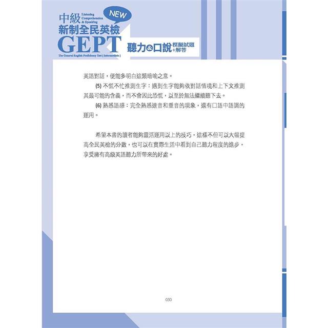 NEW GEPT 新制全民英檢(中級):聽力&口說+閱讀&寫作模擬試題+解答