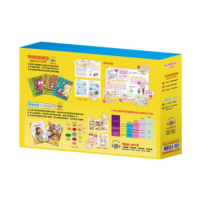 陪孩子練習用生活化的英文,和 Read&Learn與Phonics Step-By-Step 一起,前進英語的多元宇宙,輕鬆學好英語!從a,e,i,o,u到各式議題,基礎發音+閱讀教材,讓您學習英文無煩惱,為學習之路打下好基礎。