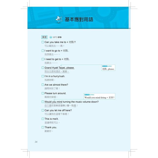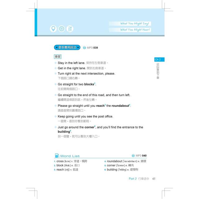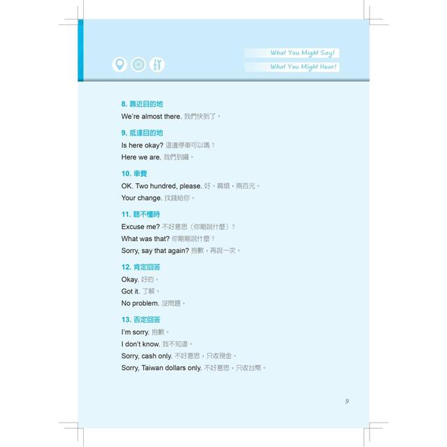 無論你是乘客或司機,只要把書中對話、例句和關鍵單字記起來便能輕鬆應對得宜。