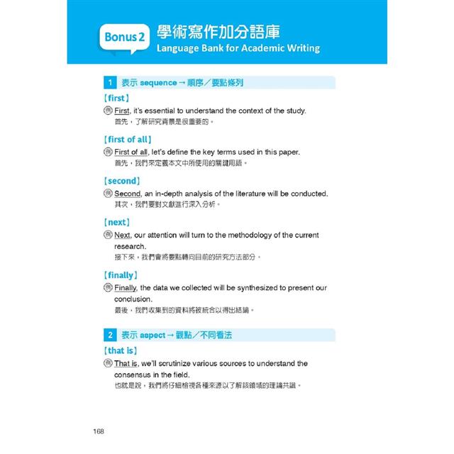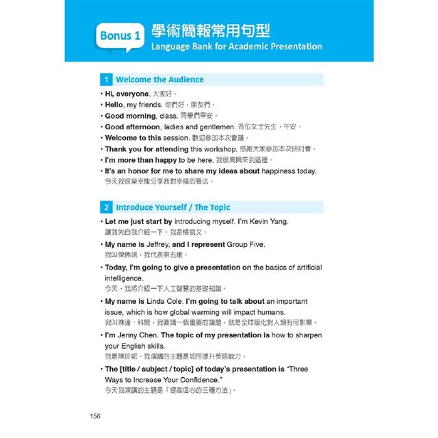 ● 學術寫作與簡報加分句,全方位厚實雙語競爭力