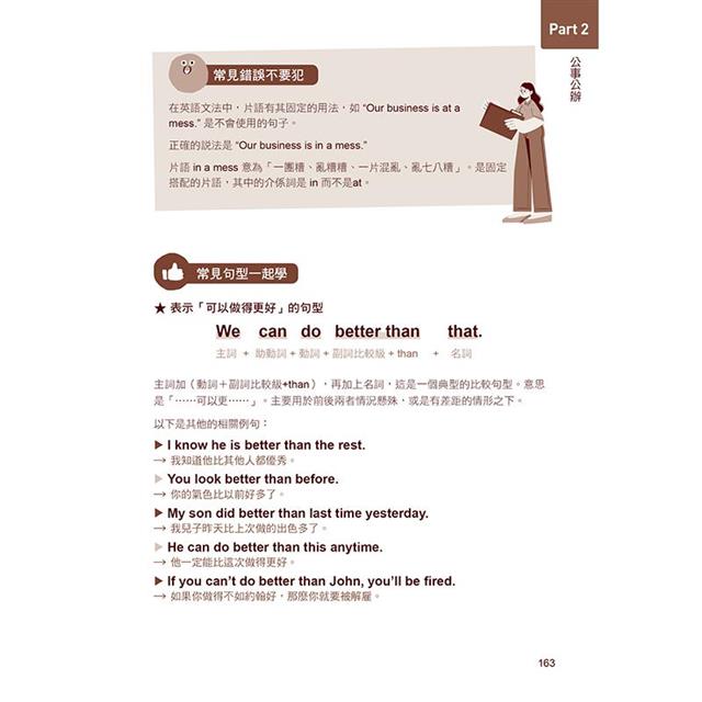 █常見錯誤不要犯,常見句型一起學為了給讀者最完整的學習,本書揪出常見的文法錯誤,幫助讀者找出自己的盲點,也拆解常用的句型,讓讀者熟悉文法概念,也能再自行換句話說,打好英文基礎!