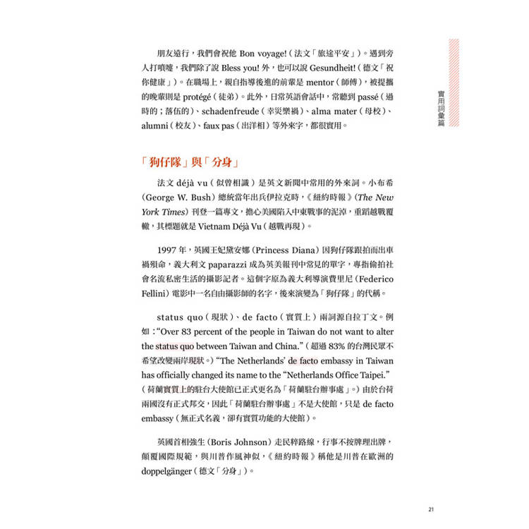 分類介紹日常生活和報章雜誌中廣泛應用的實用英文詞彙,幫助讀者將這些用法活用在自己的語言表達中。