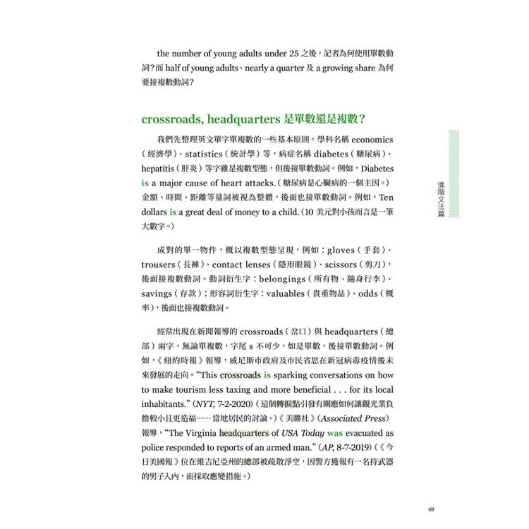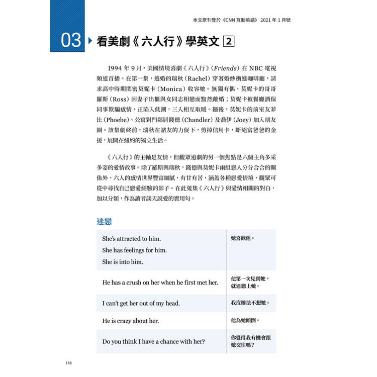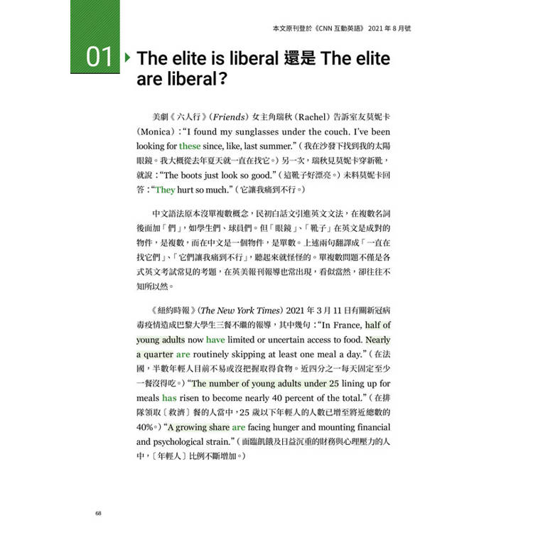 說明英美報刊和美劇詞句的文法重點或中文翻譯問題,並解說時間詞和否定詞的用法,引導讀者釐清文法要點,奠定英文基礎。