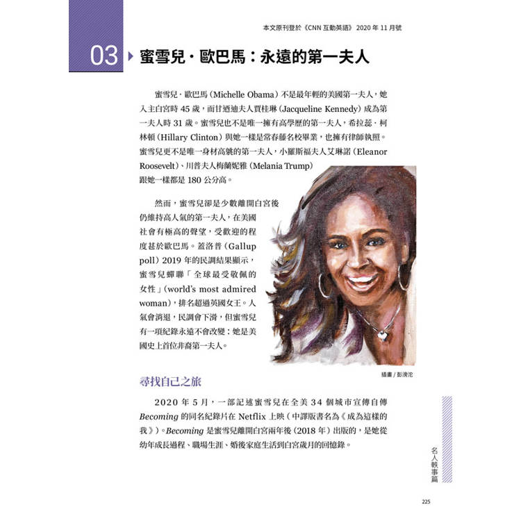 透過各領域名人的經典語錄、回憶錄或傳記等,介紹智慧金句及描繪人物的英文說法。不僅能夠啟發讀者,也有助於提升英語表達能力。