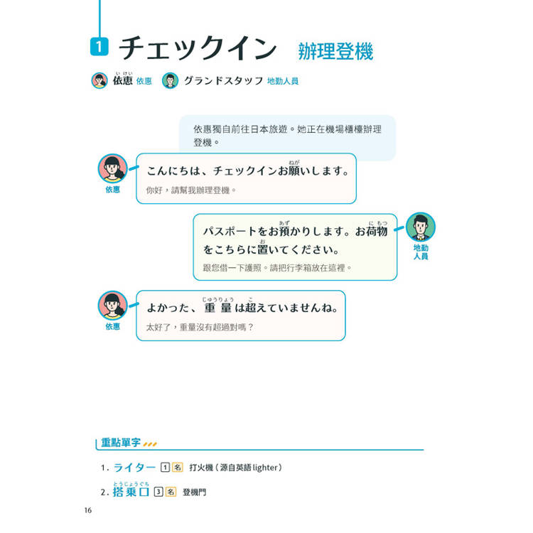 擁有良好的口說能力不僅能讓您準確表達想法、建立有效溝通,同時也能拓展視野,增加工作、求學機會。而在旅途中以日語溝通,不僅可以實踐所學,更可增添趣味,讓旅程更加盡興。快翻開本書,勇敢地開口說日語吧!