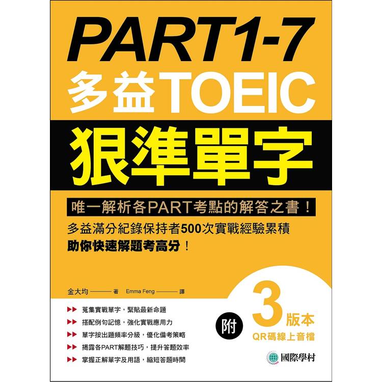 PART 1-7 多益TOEIC狠準單字:唯一解析各PART考點的解答之書!多益滿分紀錄保持者500次實戰經驗累積,助你快速解題考高分!【附QR碼線上音檔】
