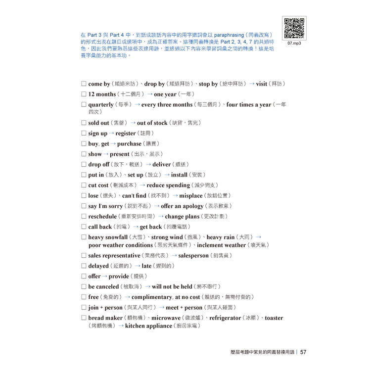 PART 3/4 歷屆考題中常見的同義替換用語(paraphrasing)