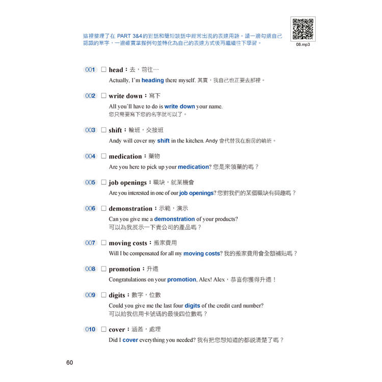 特別附贈多版本 MP3 音檔,包含純美式、純英式及英式美式混和的發音,可依個人需求自由選擇,靈活搭配使用。這種「耳朵學習法」特別適合忙碌但想高效準備的考生,有效提升備考節奏與學習密度。