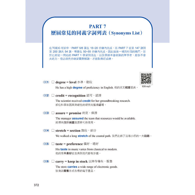 PART 7 歷屆常見的同義字詞列表(Synonyms List)