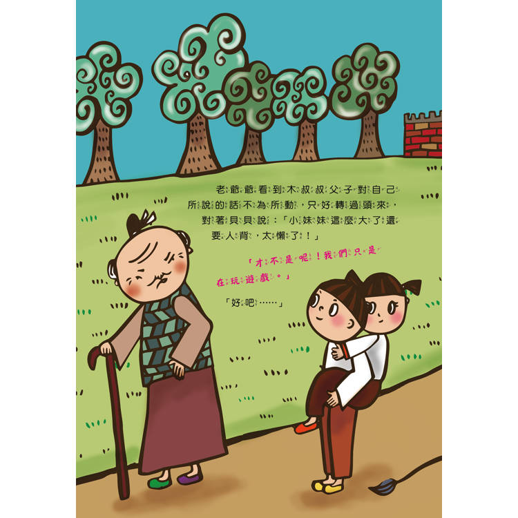 木叔叔和小木父子牽著驢子到城裡,一路上遇到了好多好多人,有人說有驢子不騎是傻瓜,也有人說爸爸該騎驢子,又有人說爸爸不該騎驢子,還有人說他們虐待動物……到底誰該騎驢子呢?