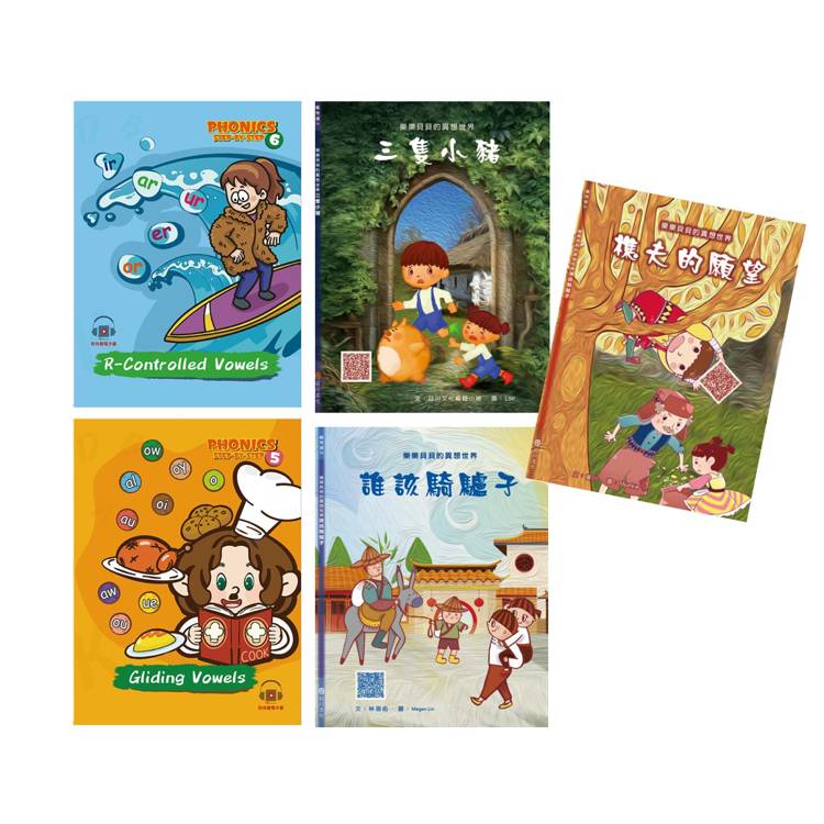學習好品格 套書:《自然發音拼讀系列Phonics Step by Step 5-6》+《樂樂貝貝的異想世界:三隻小豬+誰該騎驢子+樵夫的願望》