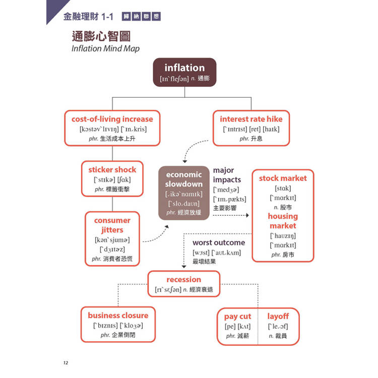 心智圖是一種視覺化的語言學習法,透過線條與圖像的方式,將單字、片語有系統地歸納呈現,有助於快速理解與記憶英文。本書以CNN新聞中常見的英文單字為素材,結合心智圖與生動圖解,幫助讀者系統化學習關鍵字彙、實用片語及常見搭配詞,並進一步透過新聞報導的深入解析,讓所學知識真正內化、靈活運用。