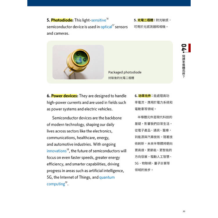 這本專為非理工背景讀者打造的「半導體科普雙語書」,將複雜的晶片知識化繁為簡,帶你輕鬆理解晶片製程與專業詞彙,洞悉二十一世紀最關鍵的核心產業,開啟與全球接軌的全新視野!
