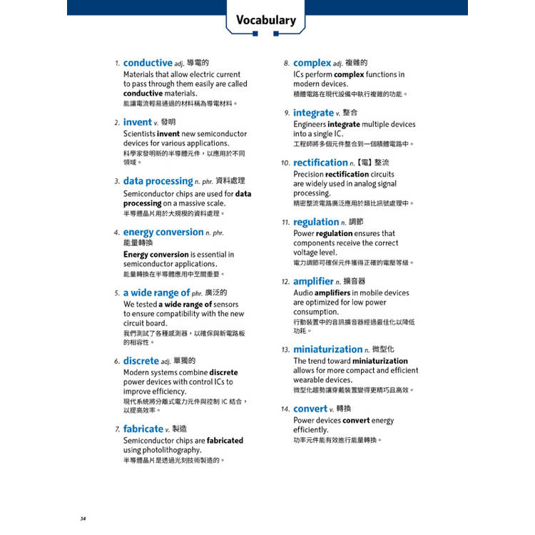 ● 關鍵詞彙:精選專業字彙並附例句,強化必備語言能力。