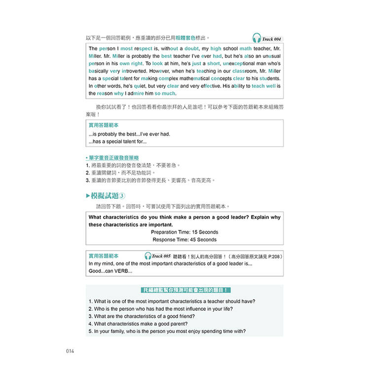 ■Appendices特別收錄:Sample Responses and Transcripts回答範例和聽力錄音原文