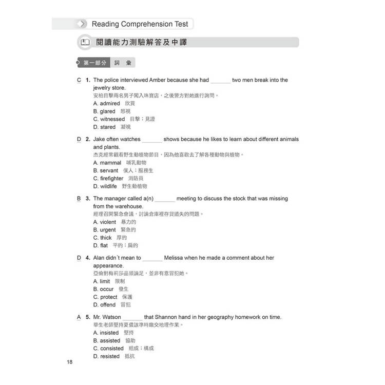 提供10回完整的中級模擬測驗(聽力&閱讀),題型豐富,讓你在短時間內累積充足的實戰經驗,掌握正式考試節奏。本書包含試題本與翻譯解答本,另附贈「應試攻略」,為考生剖析新制題型的出題脈絡並分享解題技巧,讓你讀透考點!