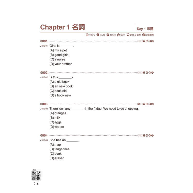 從托福TOEFL、雅思IELTS、多益TOEIC、全民英檢GEPT、學測、指考、公職國考等英文考試中,彙整出題頻率最高的文法重點及架構,不僅掌握考點,更同時掌握單字和常用片語。