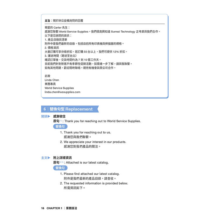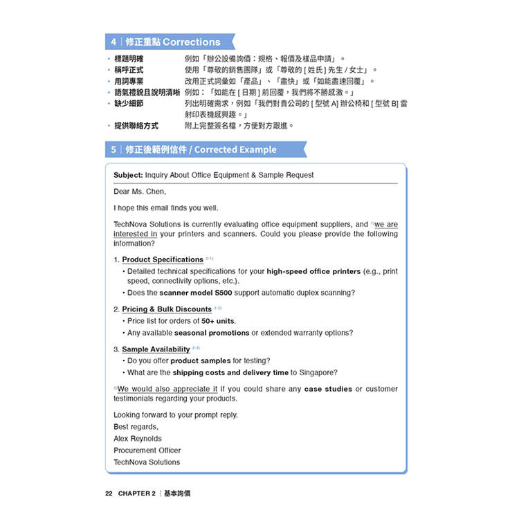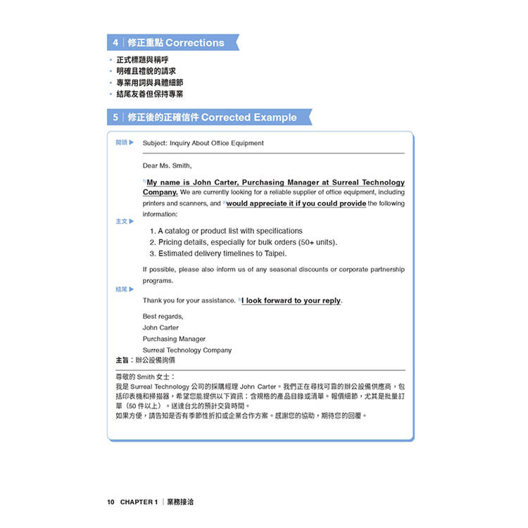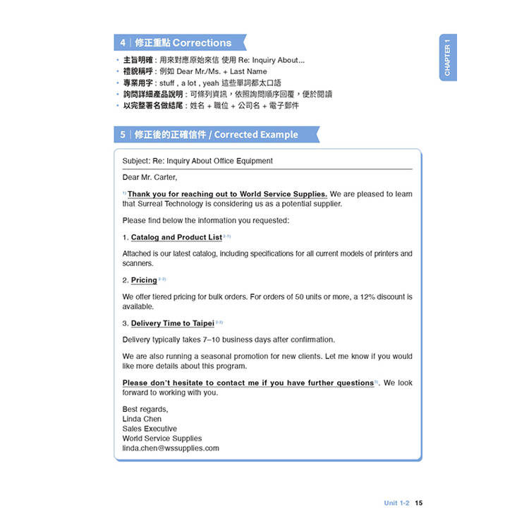 STEP 5 - 正確信件示範 : 要寫出進退得宜的專業信件,就從仿寫架構開始。